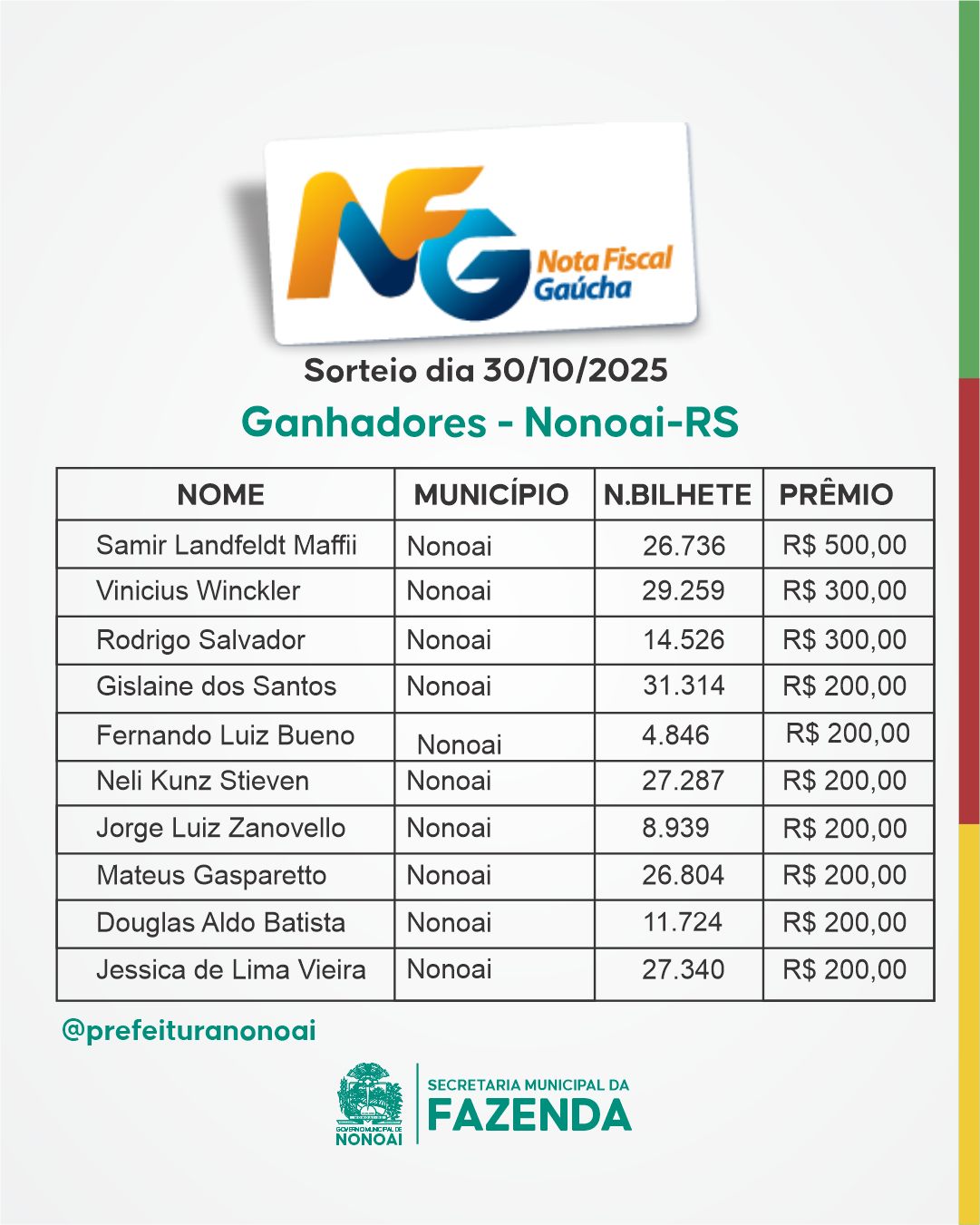 Sorteio Nota Fiscal Gaúcha – Resultados do Concurso nº 157 Notícias 11 Novembro 2025 Acessos: 88 Leia mais...